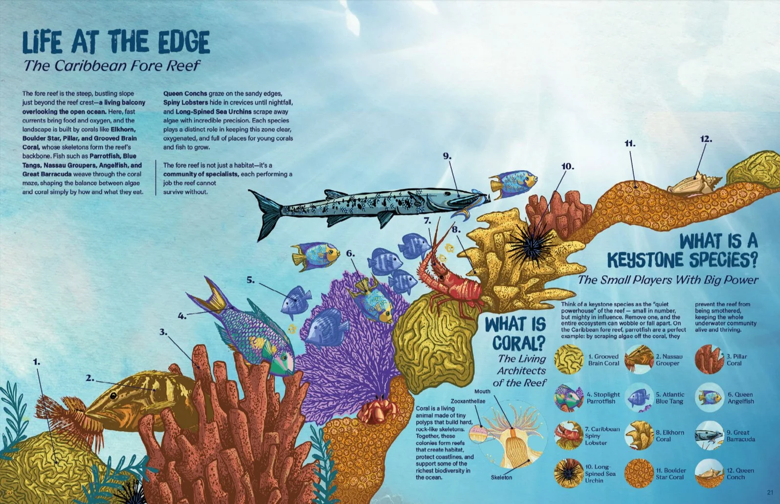 This project re-imagines the traditional field guide as an immersive, narrative-driven experience. Combining scientific illustration, visual systems, and exhibition design, the guide expands beyond the page to communicate the complexity of Caribbean reef ecosystems through layered, visual storytelling.